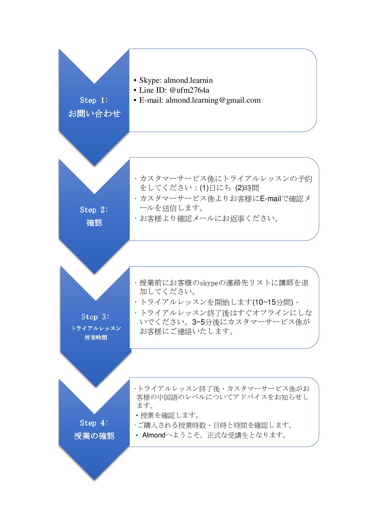 先に中国語レベルチェックをしてからトライアルレッスンを希望し ます。